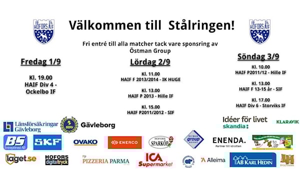Första helgen i september bjuder på följande matcher på Stålringen!