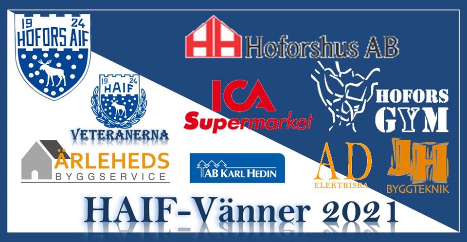 Under Mars månad så har vi fortsatt arbetet med att kontakta tidigare och nya företag och organisationer och vi är mycket glada att nu kunna presentera de företag som under 2021 kommer att vara en del av HAIF-Familjen! Vi har idag en träningsavgift som alla våra aktiva ska betala, för att hålla den på en nivå som vi anser att alla kan ha råd med så behöver vi stöd från organisationer och näringsliv. Detta är en av de största anledningarna till att vi söker samarbeten med företag. Vi vill att föreningslivet ska leva och att alla som vill ska kunna vara med i Hofors AIF, oavsett ekonomiska förutsättningar. Företag och organisationer som 2021 är HAIF-vänner: AB Karl Hedin Hofors, AD Elektriska, HAIF Veteranerna, Hoforshus AB, Hofors GYM ICA Supermarket Hofors, JH Byggteknik, Ärleheds Byggservice. Hofors GYM kommer från säsongen 2021 att synas på våra herrarnas matchställ och syns därmed både på pojk/herr och flick/dam matchkläder! Vi är oändligt tacksamma för det stöd som ni ger föreningen under säsongen 2021 och att ni vill vara en del av vår verksamhet! Fler HAIF-vänner kommer att presenteras fortlöpande och vi ser fram emot att presentera fler företag och organisationer som året 2021 kommer att vara en del av den stora och fina HAIF-familjen.