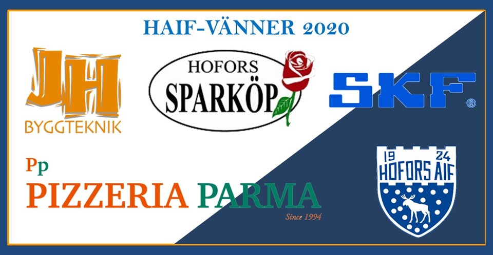 Under de inledande månaderna av året så har vi initierat kontakt med företag och organisationer och vi är mycket glada att nu kunna presentera de företag som under 2020 kommer att vara en del av HAIF-Familjen! Vi har idag en träningsavgift som alla våra aktiva ska betala, för att hålla den på en nivå som vi anser att alla kan ha råd med så behöver vi stöd från organisationer och näringsliv. Detta är en av de största anledningarna till att vi söker samarbeten med företag. Vi vill att föreningslivet ska leva och att alla som vill ska kunna vara med i Hofors AIF, oavsett ekonomiska förutsättningar. Företag och organisationer som 2020 är HAIF-vänner: JH Byggteknik, Hofors Sparköp, Pizzeria Parma, SKF. Vi är oändligt tacksamma för det stöd som ni ger föreningen under säsongen 2020 och att ni vill vara en del av vår verksamhet! Fler HAIF-vänner kommer att presenteras fortlöpande och vi ser fram emot att presentera fler företag och organisationer som året 2020 kommer att vara en del av den stora och fina HAIF-familjen.
