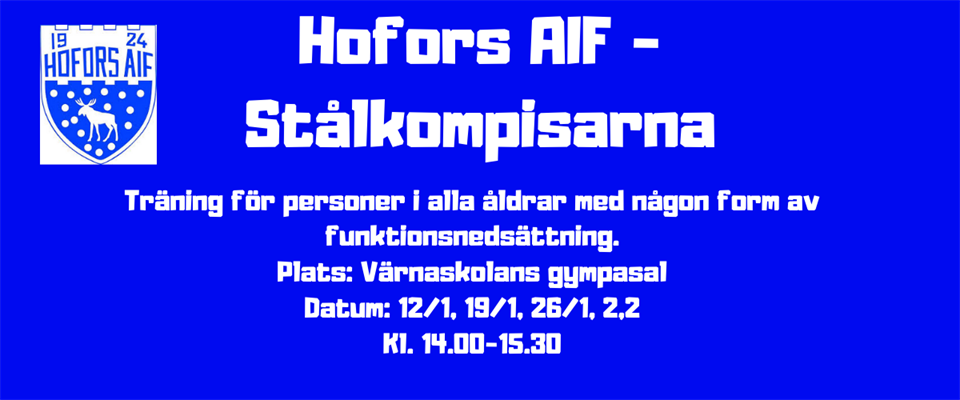 Hofors AIF startar upp en verksamhet för personer i alla åldrar med någon form av funktionsnedsättning. Det är 4 st tillfällen inplanerade i början på 2020. 12/1, 19/1, 26/1, 2/2, kl. 14.00-15.30. Vi kommer att köra i Värnahallen och till att börja med kommer vi att spela/leka fotboll. Vi anpassar aktiviteterna efter önskemål från de som kommer. Det är ledare på plats men familj/kontaktpersoner och assistenter behöver också vara med i Värnahallen. Ingen anmälan krävs till dessa fyra tillfällen. Frågor gällande Stålkompisarna kan ställas till Johanna Grönlund, 070-5120735. Hofors AIF "mer än en idrottsförening"!