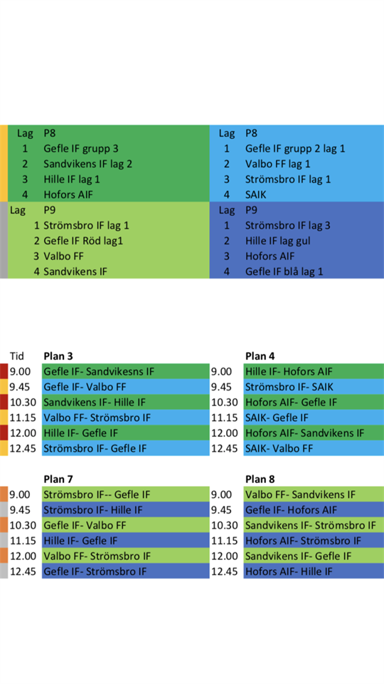 Lag 1 Alexander S, Alfons, Harry, Aryan, James, Sixten och Leo. Lag 2 Liam P, Linus, Rudin, Elias, Viggo, Alfred och Yahia. Lag 1 samlas kl 8:30 vid Storviks sports centrum. Ledare Johan Lag 2 samlas kl 9:15 vid Storviks sport centrum. Ledare Roger Är det någon som behöver skjuts?
